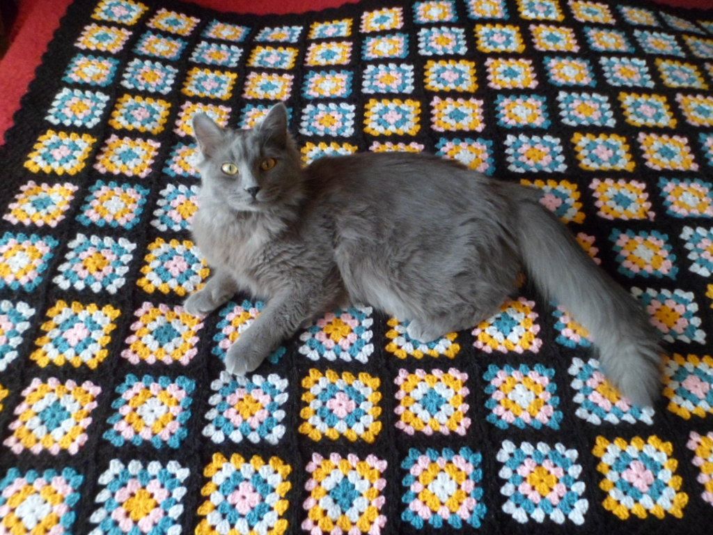 Et comme on peut le voir sur les photos il prend déjà la pose pour les photos et a adopté ma couverture pied de lit au crochet.